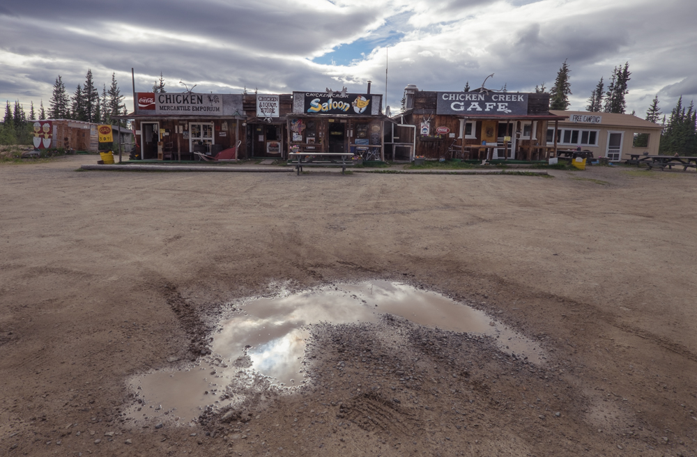 Chicken es una pequeña poblacion de antiguos mineros. No tienen ninguna tienda para comprar comida pero en su café nos invitan a un grandioso plato de jugosa carne a la brasa y pasteles! Thank you Curly!!
