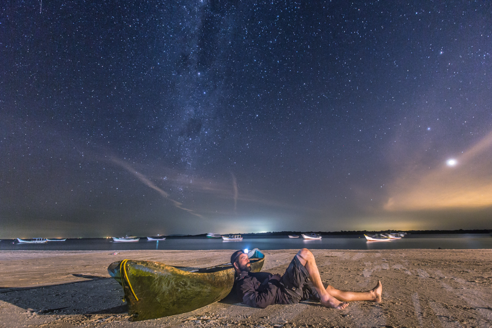 Sobre una canoa artesanal tallada de un solo tronco descanso en la playa de Superagui admirando las estrellas.Sobre una canoa artesanal tallada de un solo tronco descanso en la playa de Superagui admirando las estrellas.