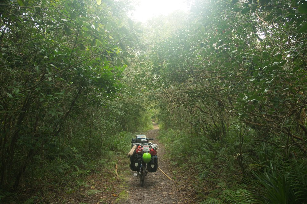 Recorro el estado de Paraná por caminos que no existen en mi mapa, y es que a veces, y más en estos lugares tan salvajes, es mejor hablar con la gente que habita y conoce los secretos de su tierra. Senderos entre la montaña, caminos de tierra e incluso extensas playas por las que pedaleo y me llevan hacia el norte, el estado de Sao Paulo.