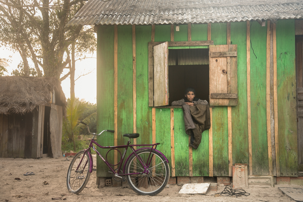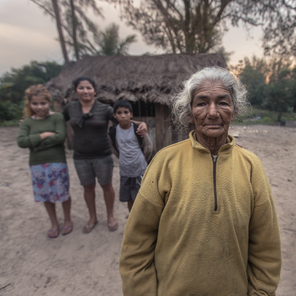 Desde este punto no hay nada que poder hacer con mi bicicleta, el agua se ha comido la poca arena que quedaba en esta parte de la playa, y mi única opción será esperar a que un barco pesquero pase por delante para que me pueda cruzar al otro lado, a isla Comprida. 1, 2, 3, 4 horas…esta anocheciendo y no llega nadie…regreso por la playa 5 kilómetros al sur, unos árboles altos agrupados me dan la señal de que una casa se encontraba allí. Vive una familia. Abuela, madre y tres hijos. El padre había fallecido hacia unos años y ahora los 5 viven en una pequeña casa de madera sobreviviendo con lo que el mar les entrega.