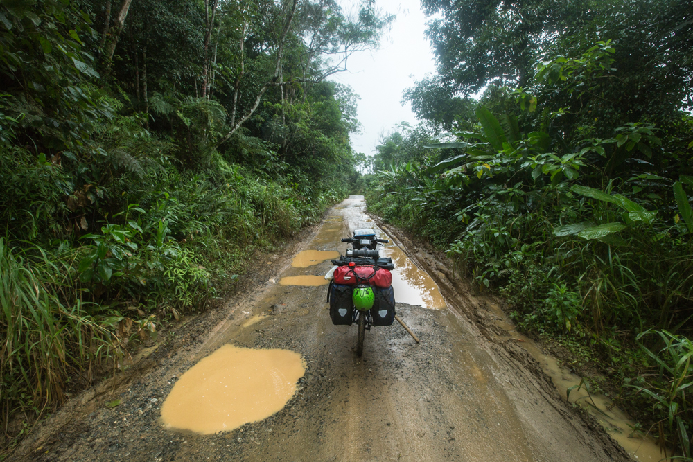 Continuo pedaleando por más playas, cogiendo más barcos, pasando pequeñas aldeas, atravesando ríos… finalmente, como si de un sueño despertara, regreso al asfalto después de pedalear por lugares increíblemente salvajes donde la vida sigue su curso a un ritmo diferente. Estoy cansado, muy cansado, han sido muchos días de esfuerzo físico con condiciones de clima bastante adversos…pero ahora pedalear por el asfalto es cosa de niños, siento que vuelo suavemente.