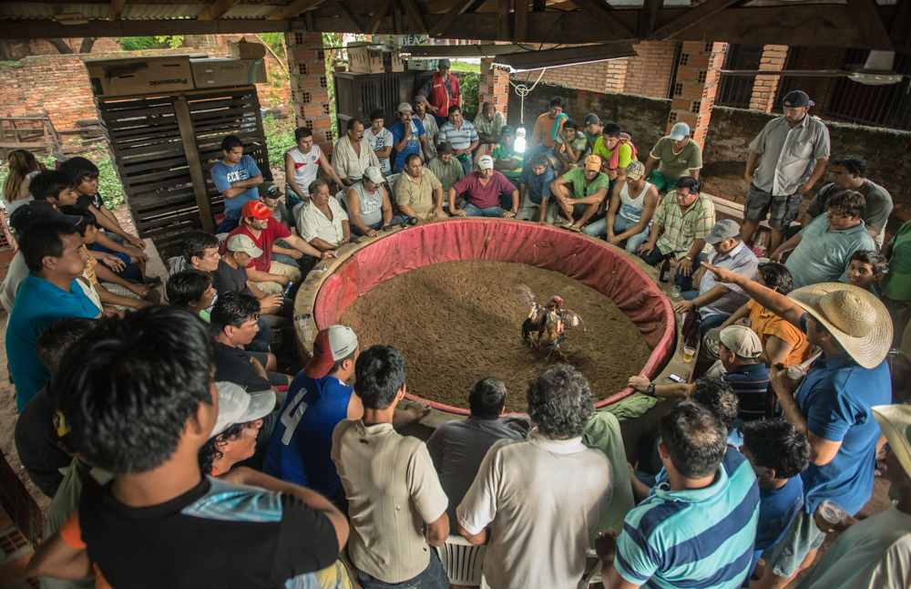 La pelea de gallos en un entretenimiento de los domingos donde los hombres apuestan por un ganador. Si después de 30 minutos de pelea no murió ninguno, se queda en tablas.