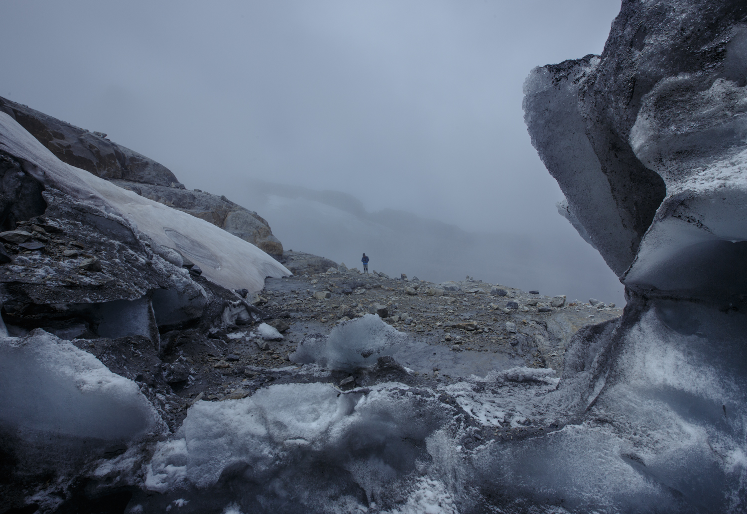 Alvaro grabando en el corazón del glaciar.