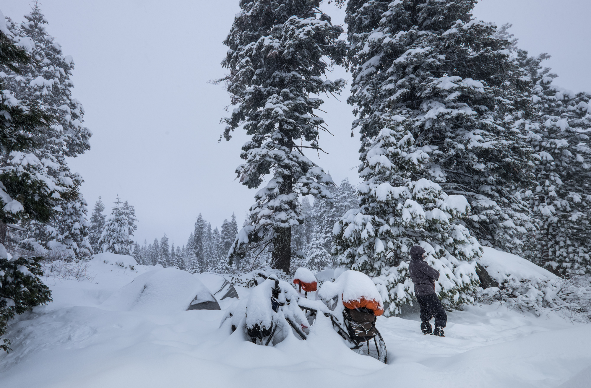 No supimos medir la intensidad de nuestros deseos y nevó hasta dejar todo completamente blanco. La nieve alcanzaba ya nuestras rodillas al caminar y la alegría se convirtió por algunos minutos en preocupación. Nos encontramos en el parque nacional de Kings Canyon y los Ranger que cuidan de esta basta extensión prácticamente virgen están atentos a nuestros movimientos, hasta el punto de mandarnos una quitanieves especialmente para nosotros y asi poder salir de las montañas otra vez.