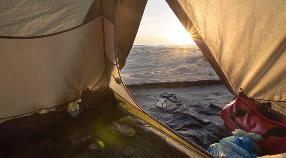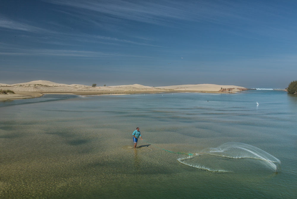 Se pueden ver algunas casas, pero no hay ningún comercio, bar o algo parecido. Esto es justo lo que yo quería encontrar desde hacia más de 500km atrás…una playa salvaje de arena blanca bañada por un mar azul, donde el sol cae por el lado de la arena y se levanta por el mar.