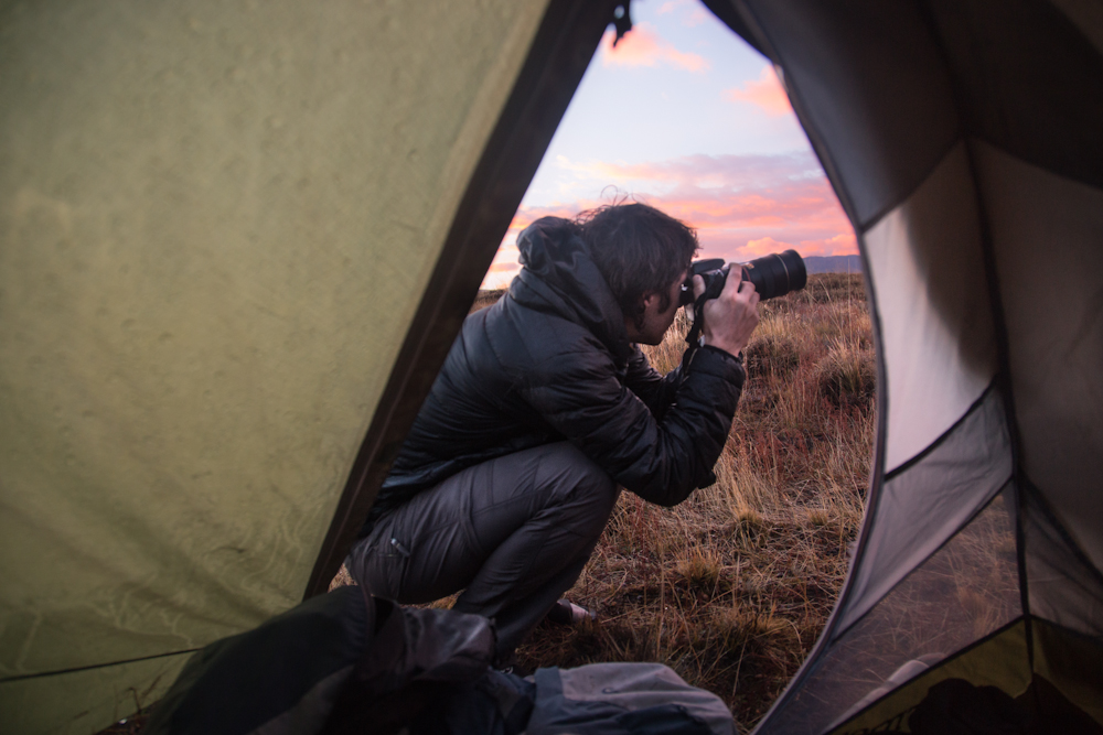 Decidimos que pase lo que pase mañana con el tiempo saldremos hacia el glaciar, a 40km de donde nos encontramos. Se pone a llover antes de cenar. Cocinamos dentro de la tienda y Frank aprovecha para aprender un poco de fotografía friéndome a preguntas por lo que acabamos haciendo un taller fotográfico dentro de la tienda.